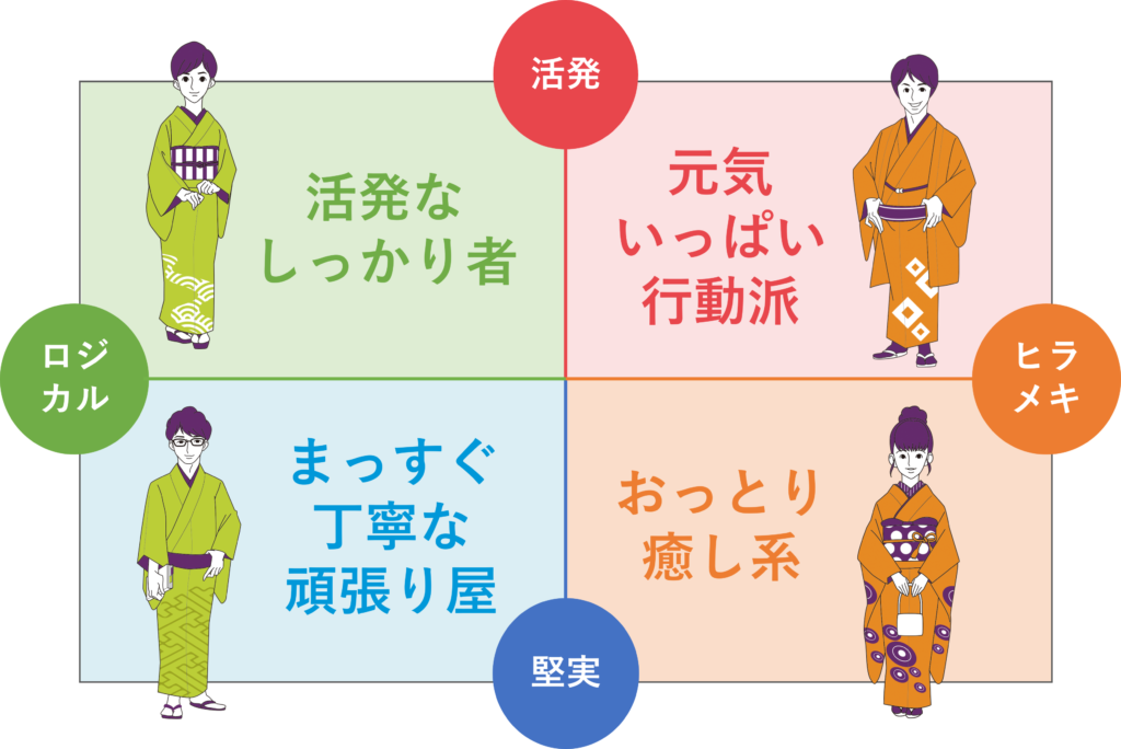 思考(横軸)と行動(縦軸)で4つのタイプに分類されます。