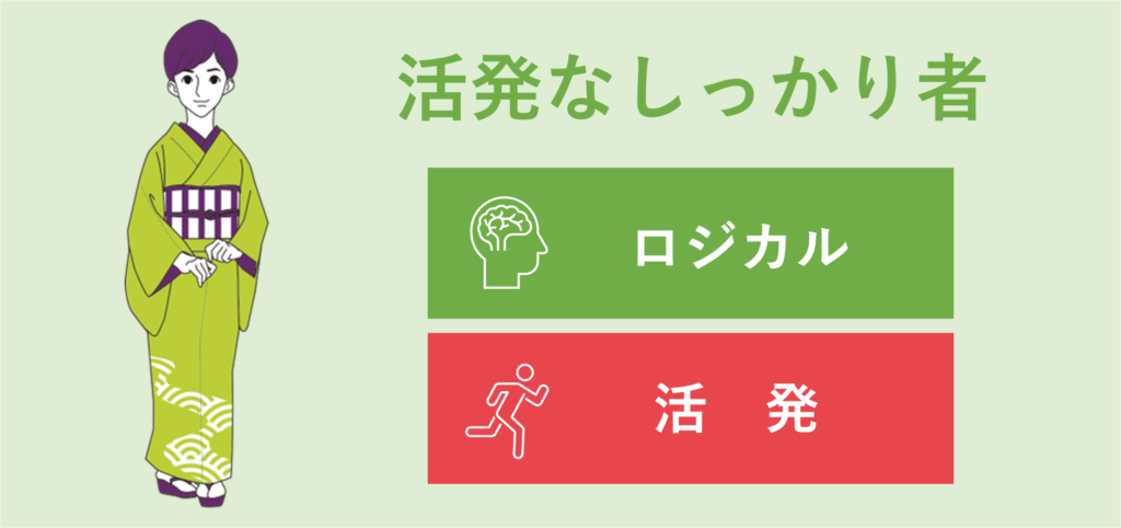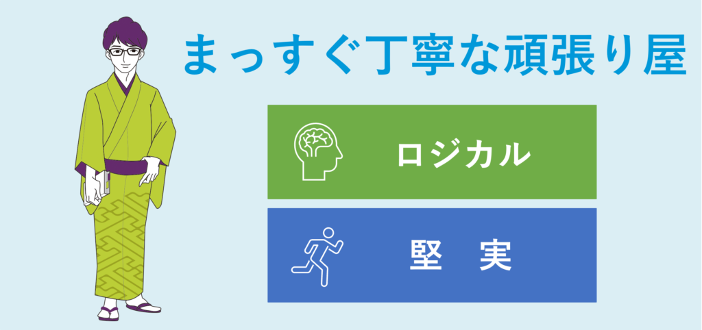 きっちり順序立てて、はっきりものごとを伝えようとします。初めてのことにはやや慎重ですが、慣れてくると積極的に動きます。みんなを取りまとめるリーダー的存在。